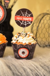 Halloween Party close up of cupcake wrapper and topper