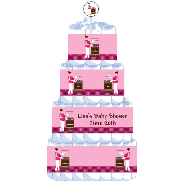 Bun in the Oven Girl - Personalized Baby Shower Diaper Cake 4 Tier