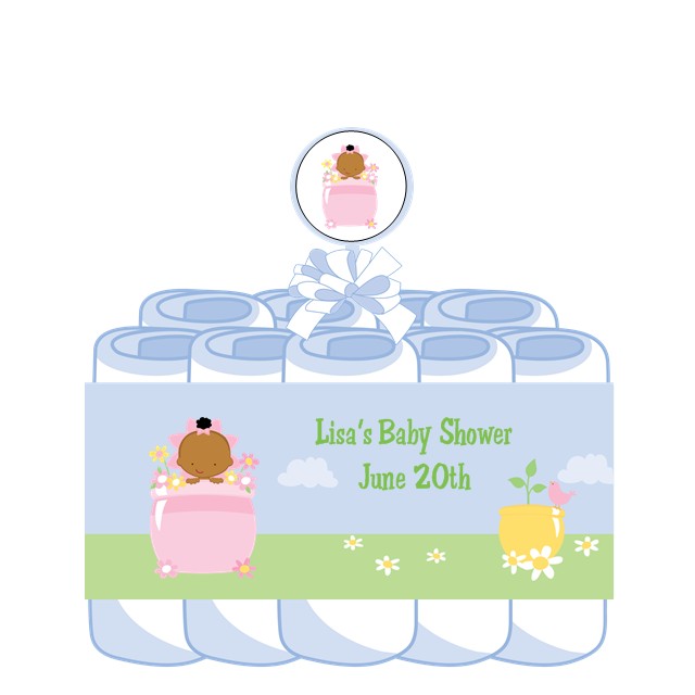 Blooming Baby Girl African American - Personalized Baby Shower Diaper Cake 1 Tier