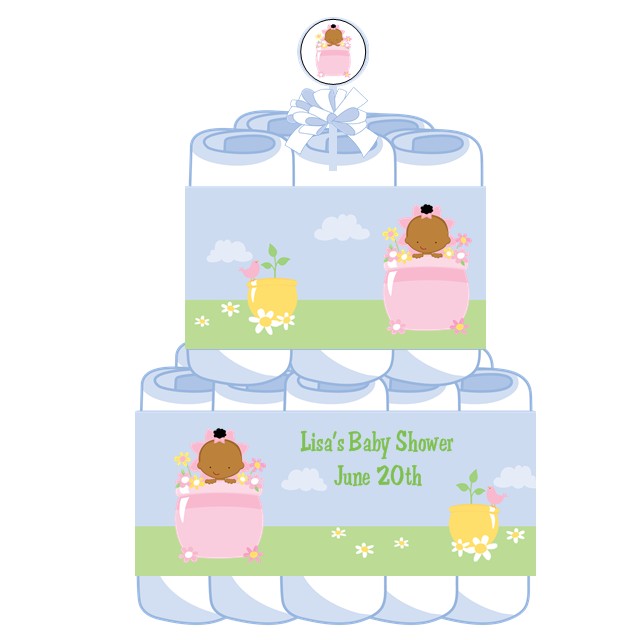 Blooming Baby Girl African American - Personalized Baby Shower Diaper Cake 2 Tier