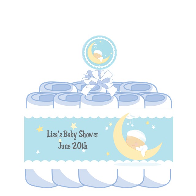 Over The Moon Boy - Personalized Baby Shower Diaper Cake 1 Tier