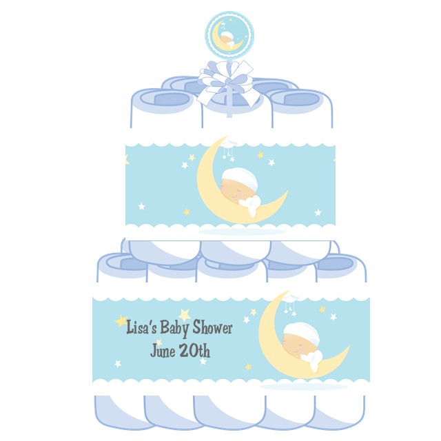 Over The Moon Boy - Personalized Baby Shower Diaper Cake 2 Tier