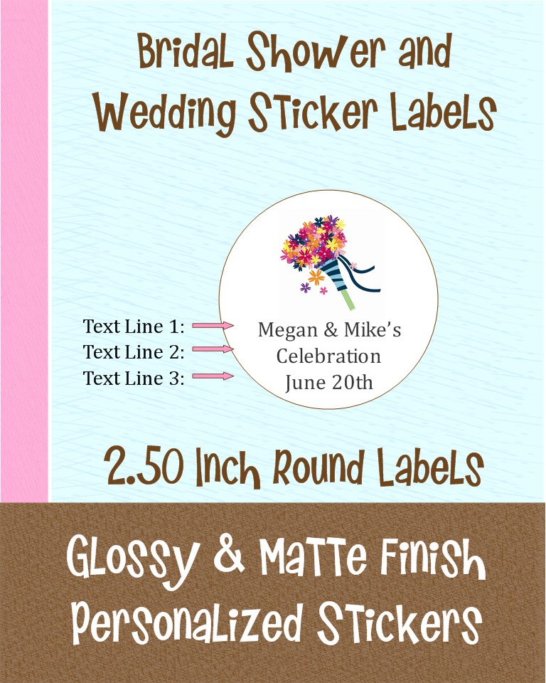 12 Round Personalized Bridal Shower and Wedding Sticker Labels