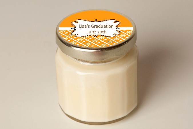 These 4 oz. soy Graduation Party Personalized Jar Candle - Graduation Party Favor candle jar favors measure 2.5" W x 2.5" H (20-25 hours of burn time).
